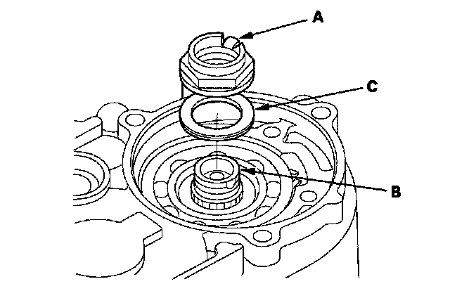 21. Pry the lock washer (C), and remove it.