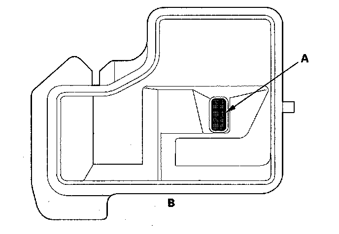 50. Clean the inlet opening (A) of the ATF strainer (B) thoroughly with compressed air, then check that it is good condition and that inlet opening is not clogged.
