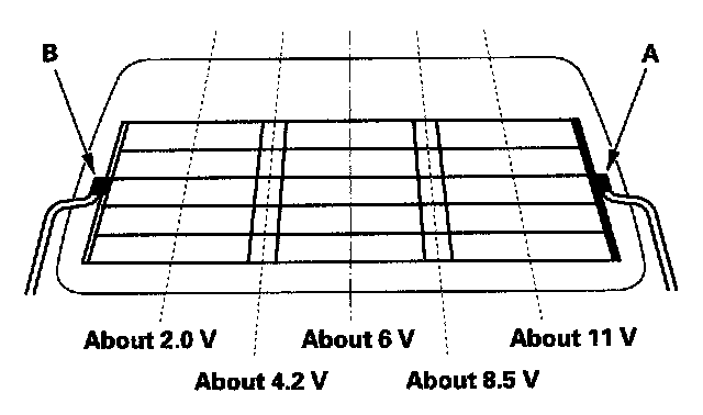 1. Check for voltage between the positive terminal (A) and body ground with the ignition switch and defogger switch ON.