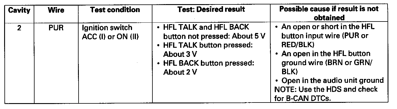 - If all input test prove OK, the HandsFreeLink control unit must be faulty; replace it.
