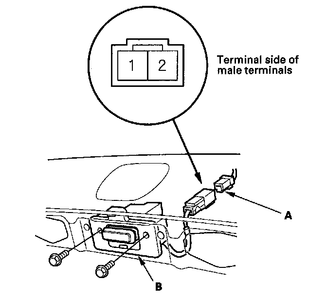 2. Disconnect the 2P connector (A) from the trunk lid opener switch (B).