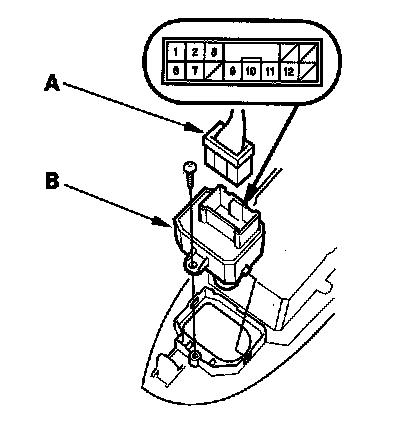 2. Disconnect the 13P connector (A) from the power mirror switch (B).