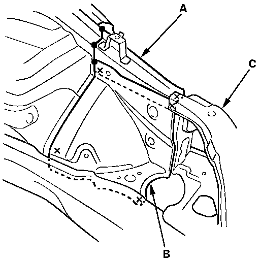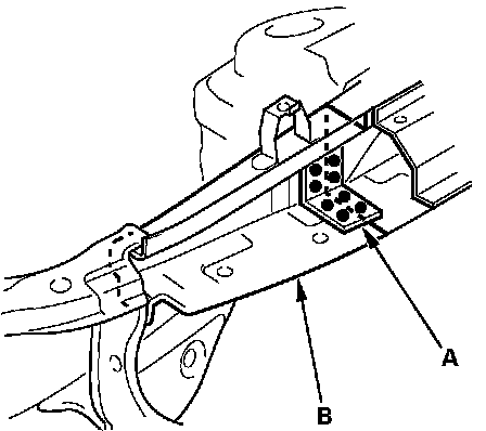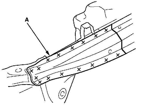 - Weld the wheelhouse upper extension (A) and dashboard upper side member extension (B).