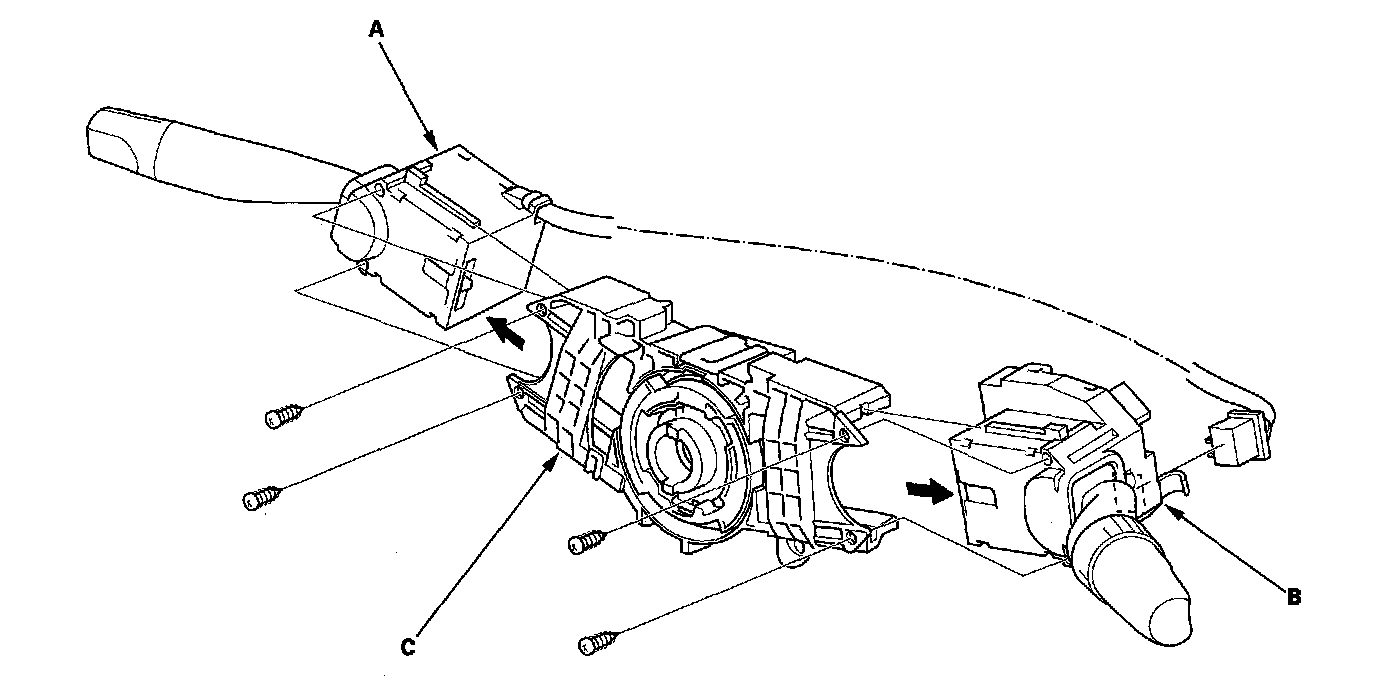 4. Remove the combination light switch (A) and the wiper/washer switch (B).
