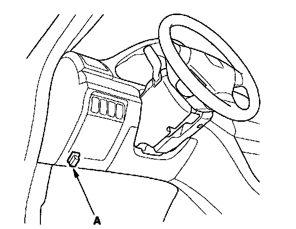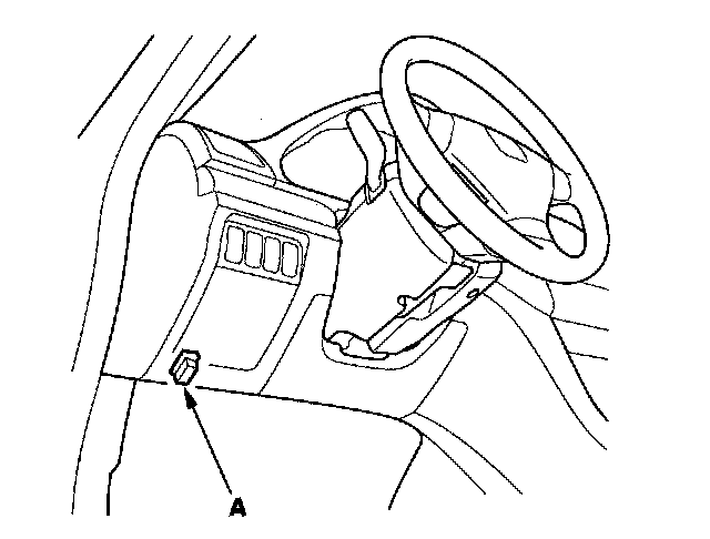 2. With the ignition switch OFF, connect the HDS to the data link connector (DLC) (A) under the driver's side of the dashboard.