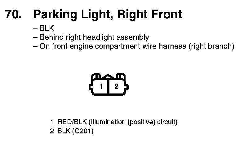 70. Parking Light, Right Front: