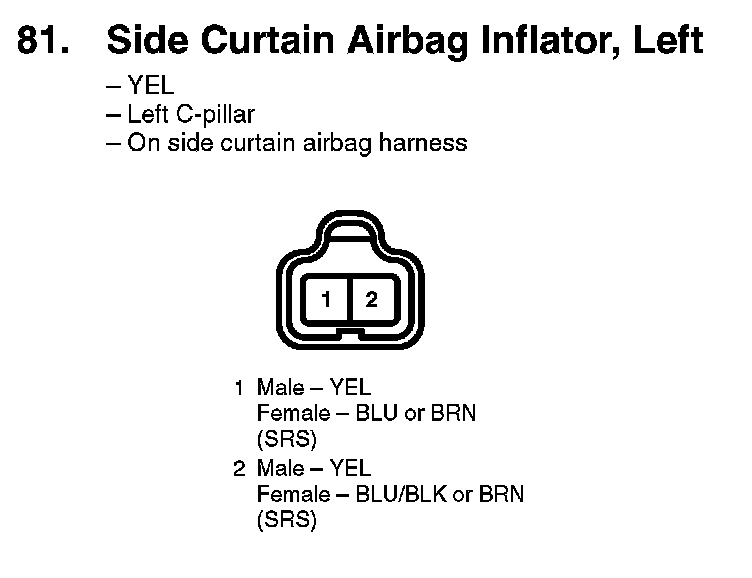 81. Side Curtain Airbag Inflator, Left: