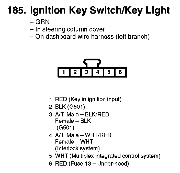 185. Ignition Key Switch/Key Light: