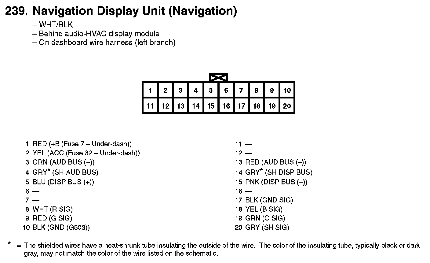Navigation Unit Inputs And Outputs For Connector A (20P) (Part 2):