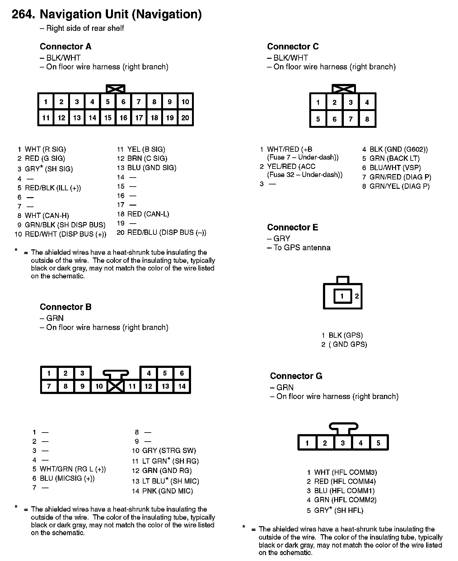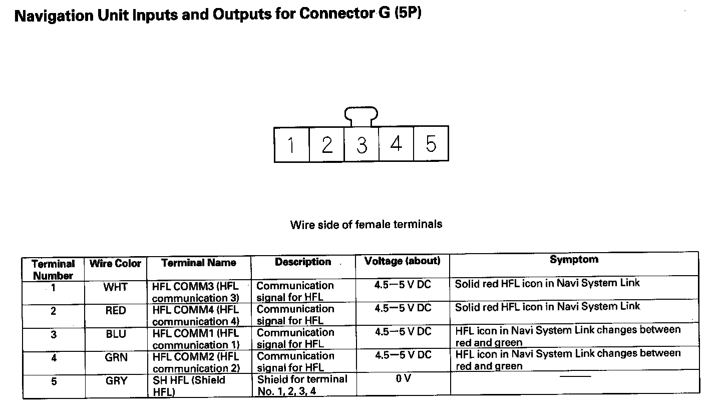 Navigation Unit Inputs And Outputs For Connector G (5P):