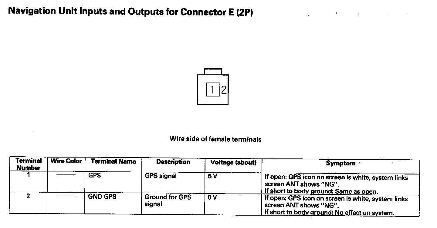 Navigation Unit Inputs And Outputs For Connector E (2P):