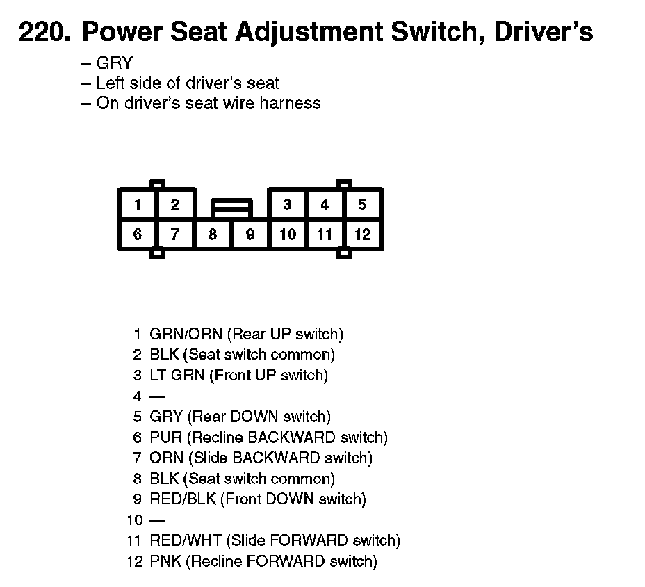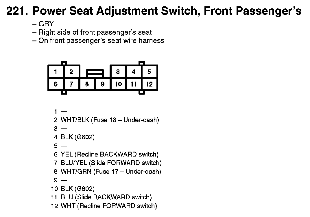 221. Power Seat Adjustment Switch, Front Passenger's: