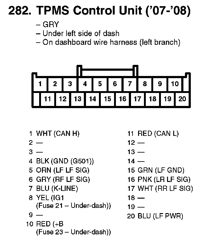 TPMS Control Unit Inputs And Outputs 20P Connector (Part 1):