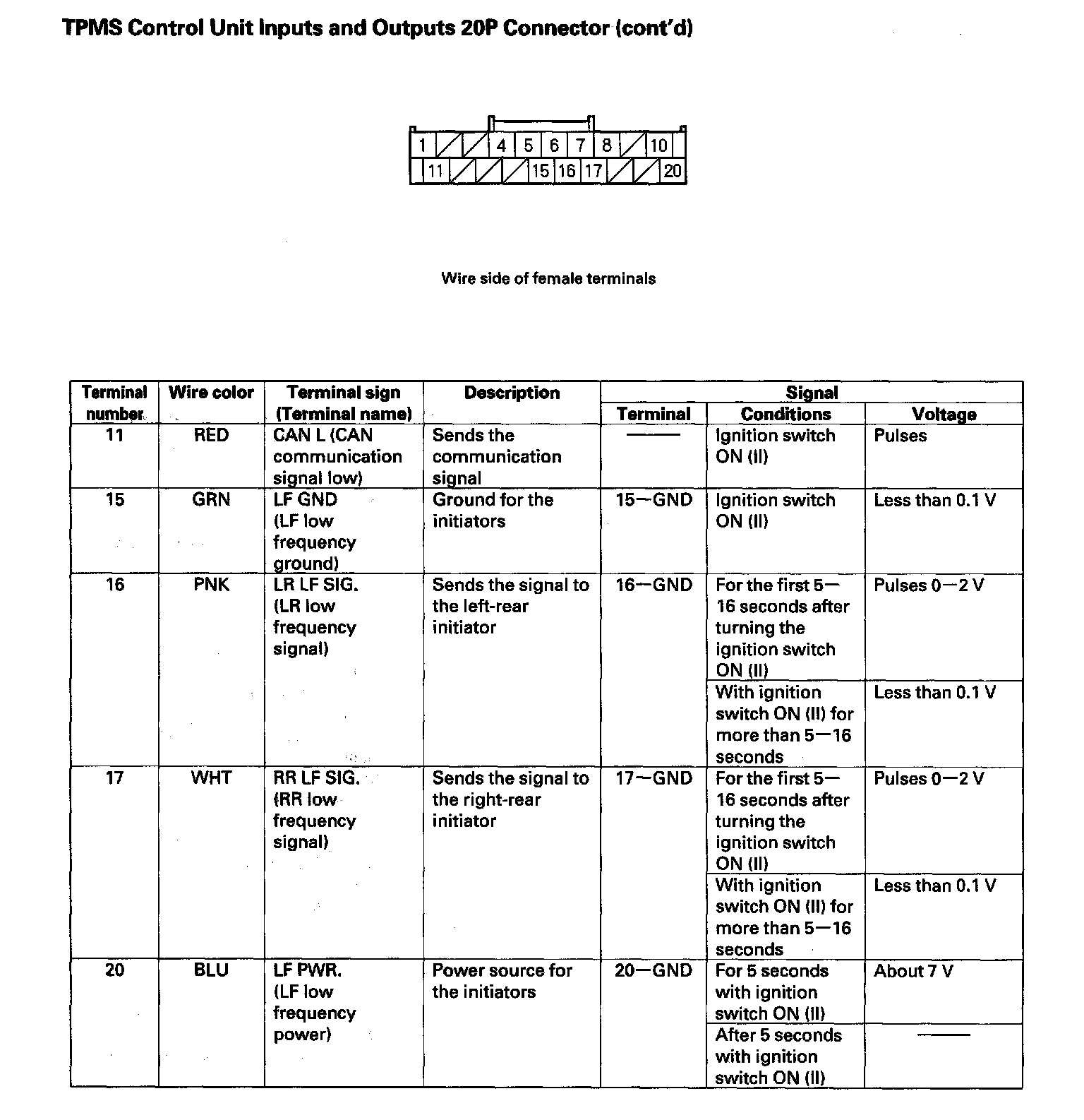 TPMS Control Unit Inputs And Outputs 20P Connector (Part 2):