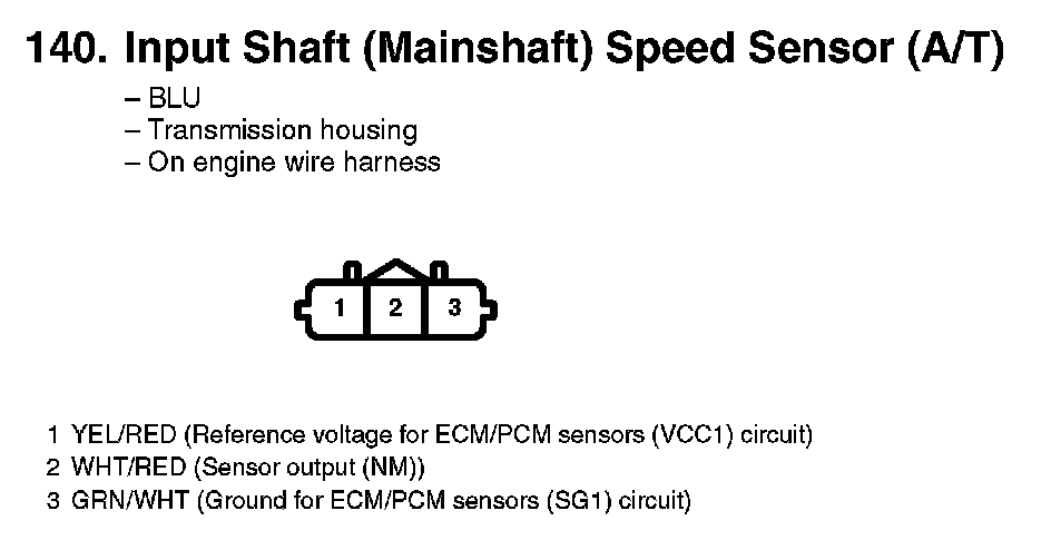140. Input Shaft (Mainshaft) Speed Sensor (A/T):