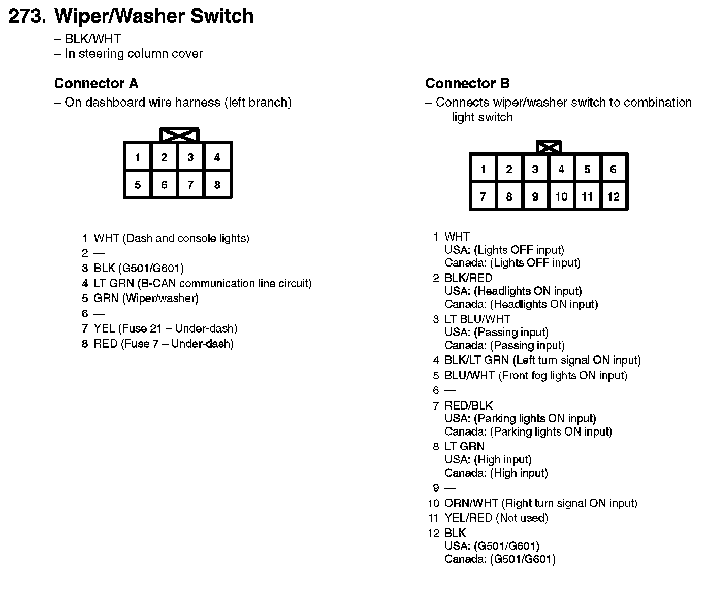 273. Wiper/Washer Switch: