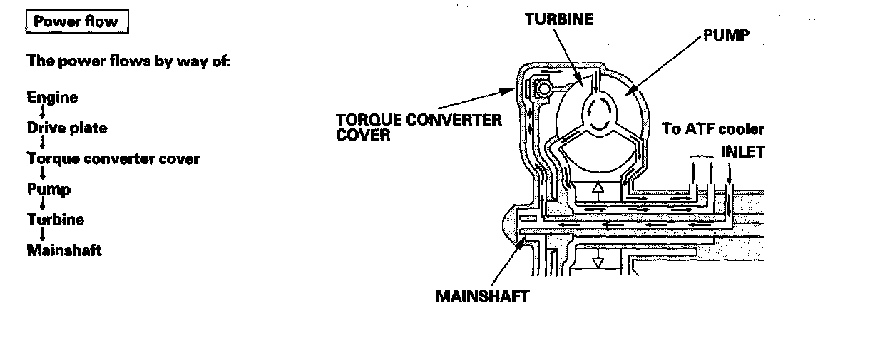 Fluid entering from the chamber between the torque converter cover and the torque converter clutch piston passes through the torque converter and goes out through the chambers between the turbine and the stator, and between the pump and the stator. As a result, the torque converter clutch piston moves away from the torque converter, and the torque converter lock-up clutch is released; torque converter clutch lock-up is OFF.