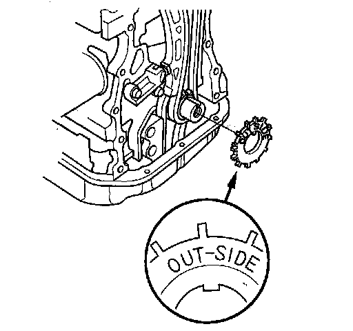 1. Set the crankshaft to top dead center (TDC). Align the TDC mark (A) on the crankshaft sprocket with the pointer (B) on the engine block.