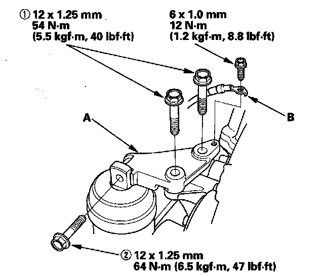 21. Install the upper bracket (A), then tighten the bolts in the sequence shown.