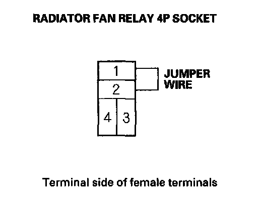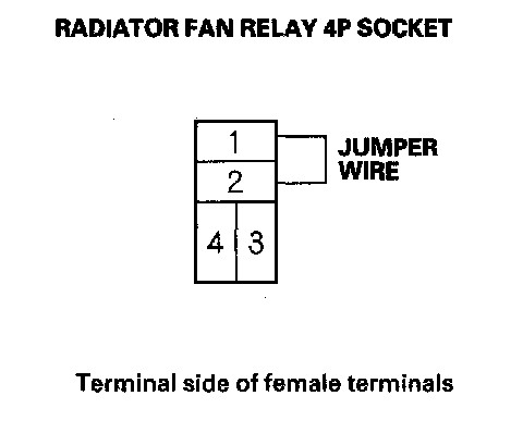 5. Connect radiator fan relay 4P socket terminal No. 1 and No. 2 with a jumper wire.