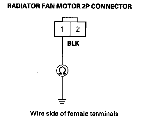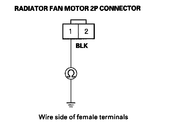 9. Check for continuity between radiator fan motor 2P connector terminal No. 1 and body ground.