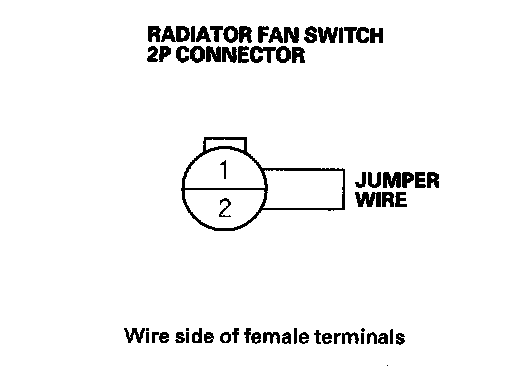 11. Connect radiator fan switch 2P connector terminal No. 1 and No. 2 with a jumper wire.