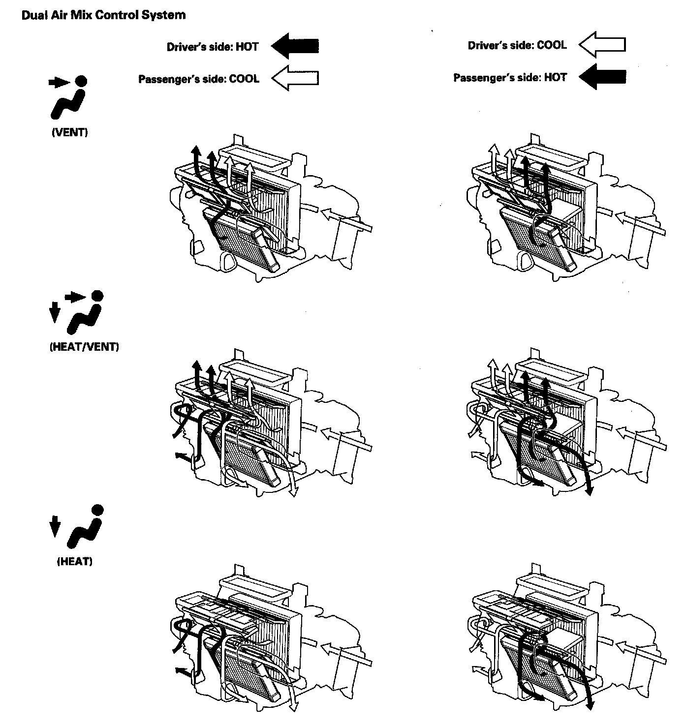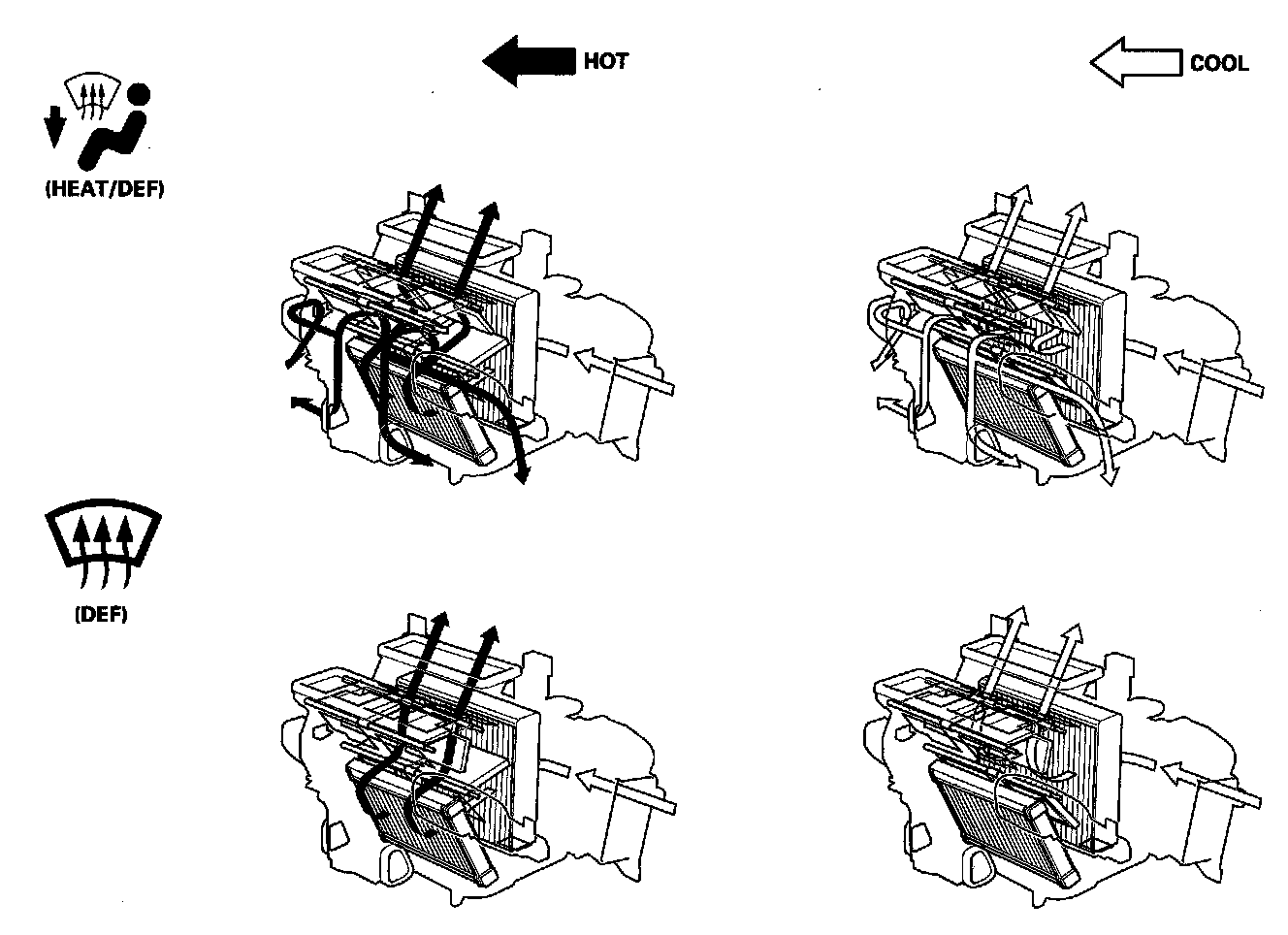 System DescriptionThe air conditioning system removes heat from the passenger compartment by transferring heat from the ambient air to the evaporator. The evaporator cools the air with the refrigerant that is circulating through the evaporator. The refrigerant expands in the evaporator, and the evaporator becomes very cold and absorbs the heat from the ambient air. The blower fan pushes air across the evaporator where the heat is absorbed, and then it blows the cool air into the passenger compartment.