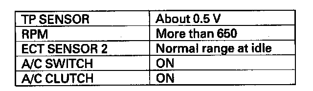 5. Using the HDS, confirm the following values in the PGM-FI Data List at idle.