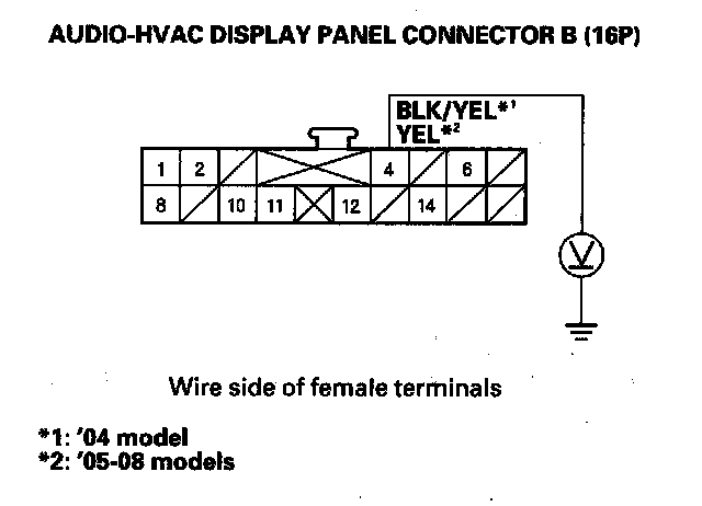 YES - Check for loose wires or poor connections at audio-HVAC display panel connector B (16P). If the connections are good, substitute a known-good audio-HVAC display panel, and recheck. If the symptom/indication goes away, replace the original audio-HVAC display panel.