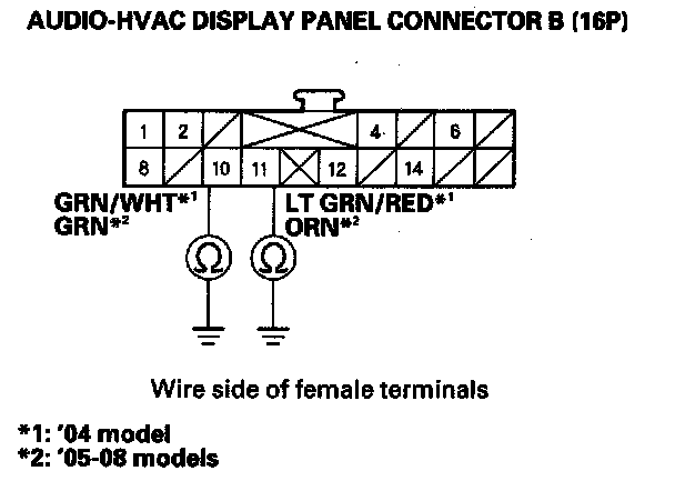 7. Disconnect audio-HVAC display panel connector B (16P).