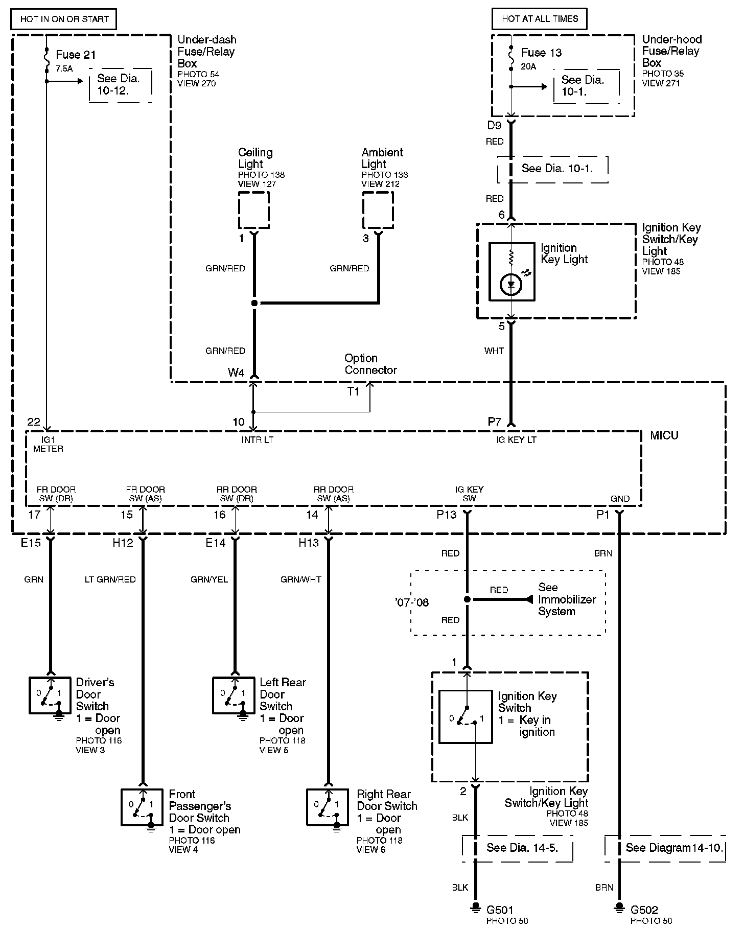 Connector Views: Connector terminal views (references to VIEWS) referred to within these diagrams can be found at Connector Views by View Number. Connector Views By View Number