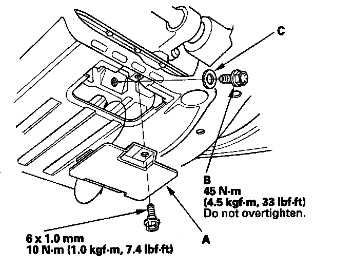 4. Reinstall the drain bolt with a new washer (C).