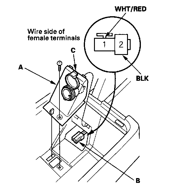 3. Disconnect the 2P connector (B) from the console accessory power socket (C).