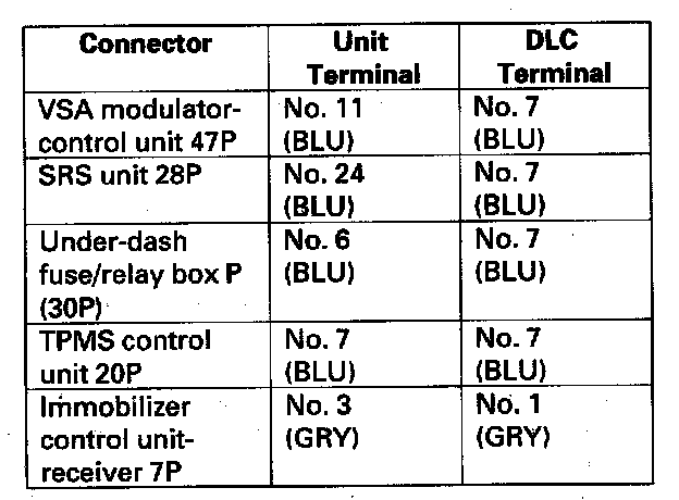 NO - Repair short in the wire between the DLC No. 7 (K-line) and the VSA modulator-control unit, the SRS unit, the TPMS control unit, or the under-dash fuse/relay box (multiplex integrated control unit), or DLC No. 1 (DIAG-H line) and the immobilizer control unit-receiver.