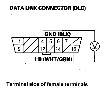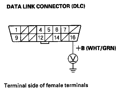 25. Measure voltage between DLC terminal No. 16 and body ground.