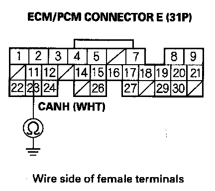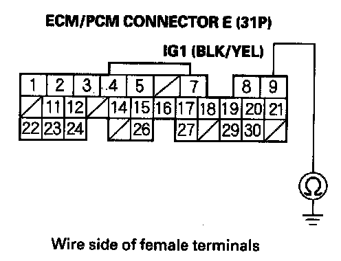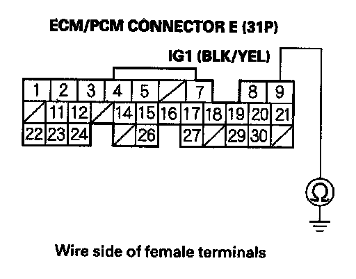 32. Check for continuity between ECM/PCM connector terminal E11 and body ground.
