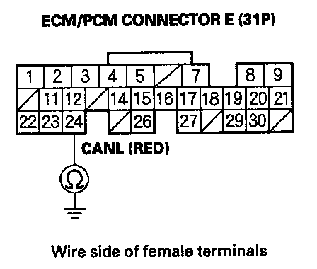35. Check for continuity between ECM/PCM connector terminal E24 and body ground.