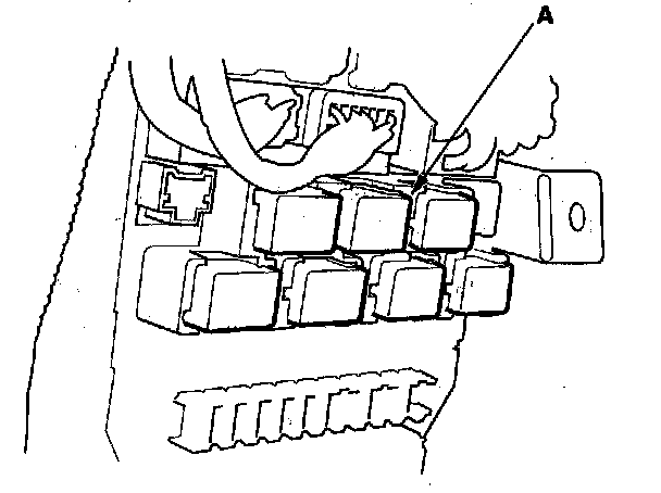 57. Remove the left kick panel, then remove PGM-FI main relay 2 (FUEL PUMP) (A) from the under-dash fuse/relay box.