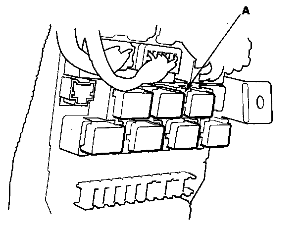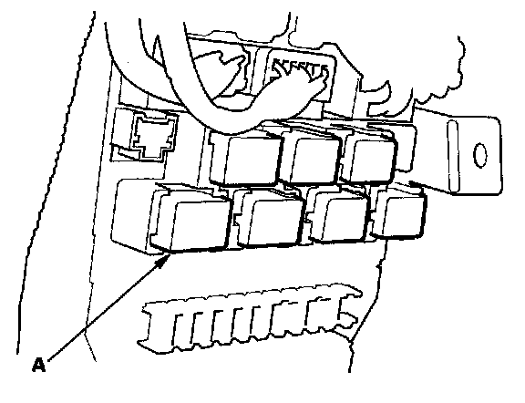 72. Remove the left kick panel, then remove PGM-FI main relay 1 (FI MAIN) (A) from the under-dash fuse/relay box.
