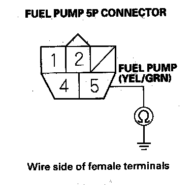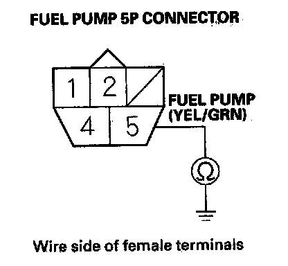 58. Check for continuity between fuel pump 5P connector terminal No. 5 and body ground.