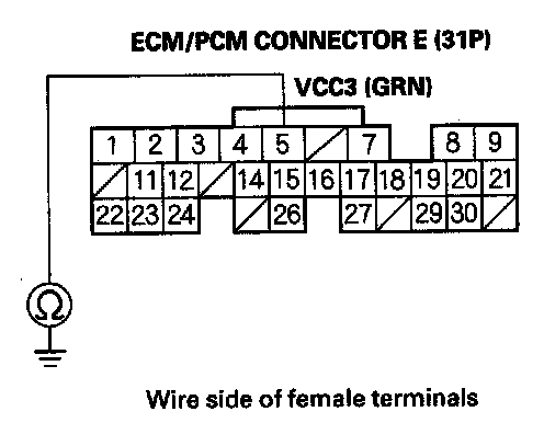 99. Check for continuity between ECM/PCM connector terminal E5 and body ground.