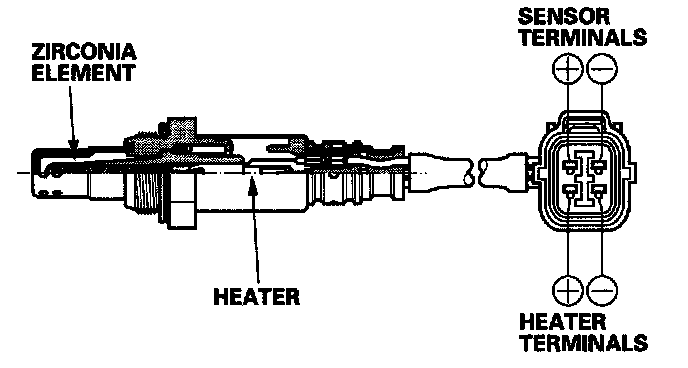 The A/F sensor operates over a wide air/fuel range. The A/F sensor is installed upstream of the TWC, and sends signals to the ECM/PCM which varies the duration of fuel injection accordingly.