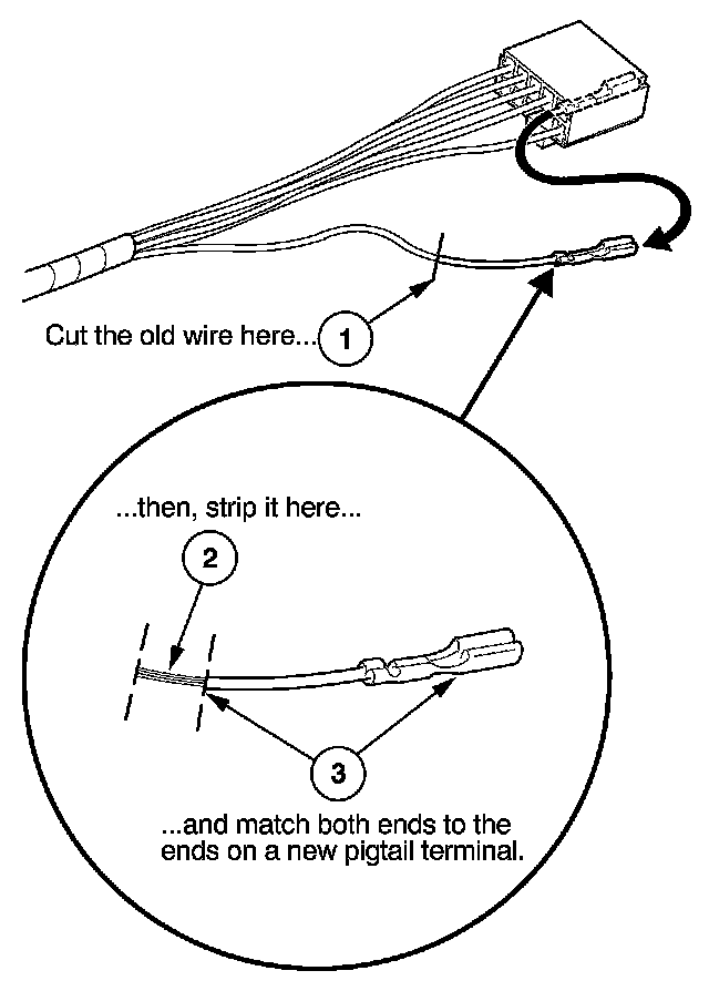3. Select a pigtail terminal that matches the original wire at both ends (same kind of terminal and same diameter bare wire).