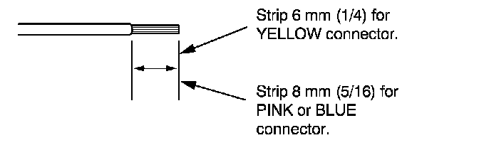 7. If you are using a yellow splice connector, strip about 6 mm (1/4 inch) of insulation off the ends of both wires. If you are using a pink or blue splice connector, strip off about 8 mm (5/16 inch) of insulation.