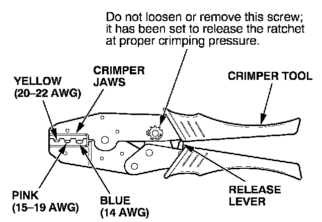 8. Put the splice connector in the proper size slot in the Crimper Tool, slide it to one end (where the flare begins), and close the crimper handles far enough to hold it in place. To release the ratchet mechanism at any point after the first click, squeeze the handles slightly and push the release lever, then let the handles open.