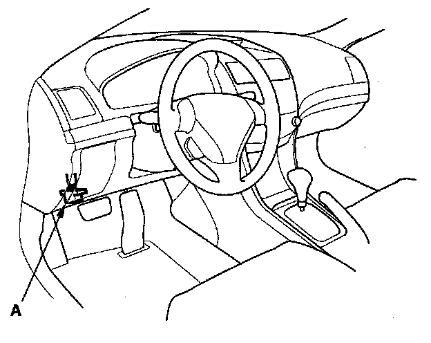 2. If the MIL stays on, connect the HDS to the data link connector (DLC) (A) located under the driver's side of the dashboard.