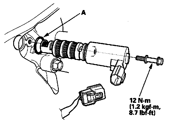 VTC Oil Control Solenoid Valve Removal/Test/Installation1. Disconnect the VTC oil control solenoid valve 2P connector (A).