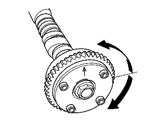 5. Check that the variable valve timing control (VTC) actuator is locked by turning the VTC actuator counterclockwise. If not locked, turn the VTC actuator clockwise until it stops, then recheck it. If it is still not locked, replace the VTC actuator.