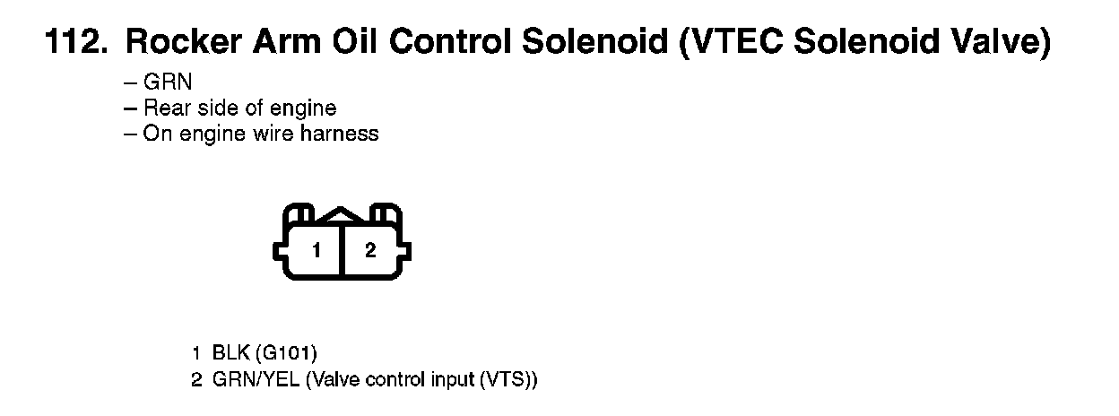 112. Rocker Arm Oil Control Solenoid (VTEC Solenoid Valve):