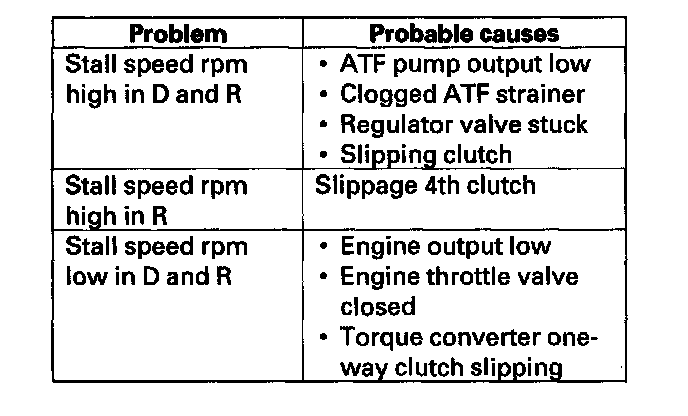 9. If the stall speeds are out of the service limit, problems and probable causes are listed in the table: